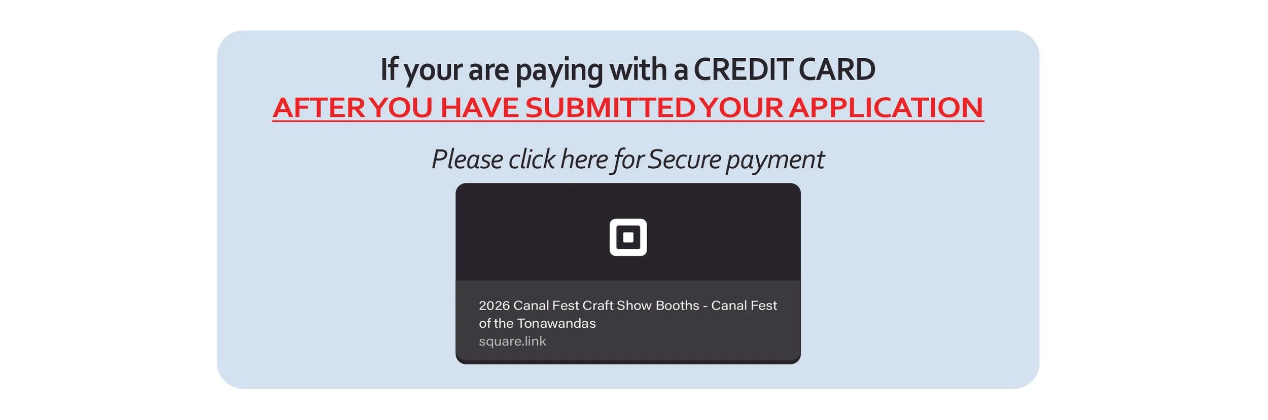 Please include any booth requests in in the comment field on your application. Do not send in a separate email. It will get lost in the sauce.